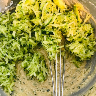 Ajoutez la courgette égouttée et mélangez de nouveau au fouet :
