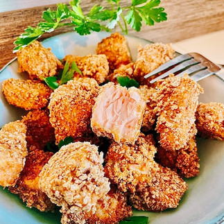 Disposer les morceaux de saumon panés sur une plaque de cuisson et cuire au four pendant 10 à 15 minutes à 180 degrés.
